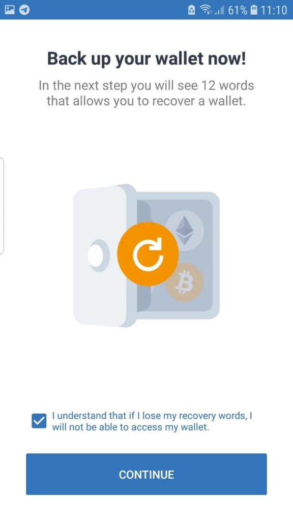 IMPORTANT : There is no way to change or recover your 12 word phrase. In case of lost or forgotten.