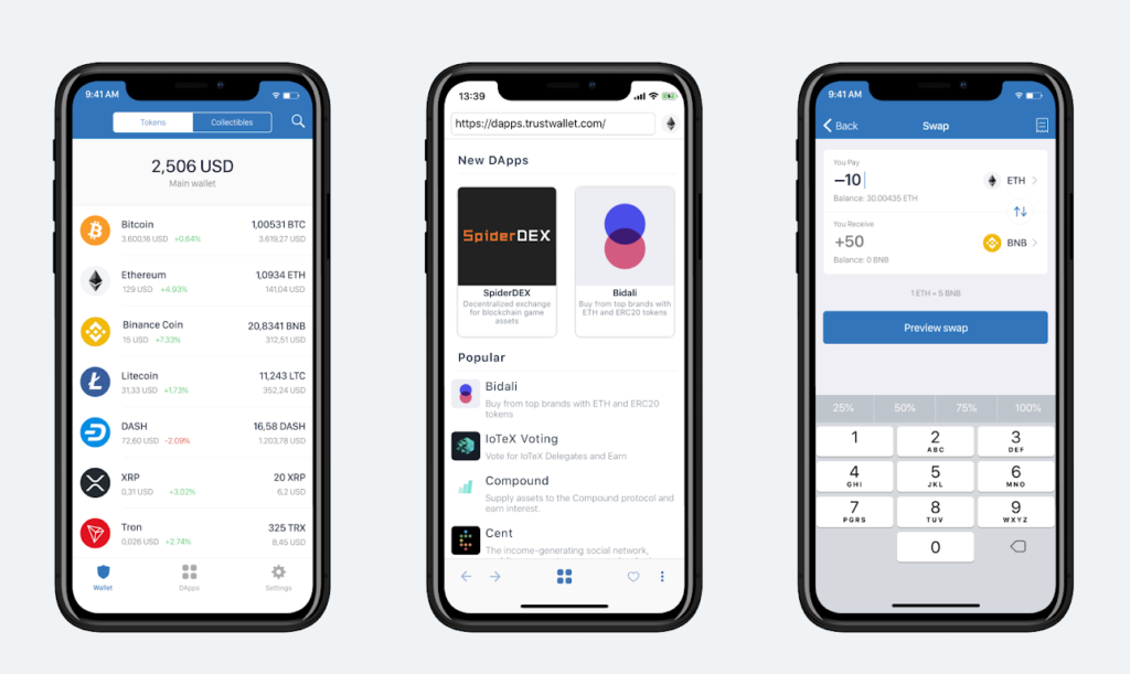 Trust Wallet is a secure. Open source, Decentralized and Anonymous Ethereum wallet application that supports Ethereum and over 20,000 different Ethereum based tokens (ERC20, ERC223 and ERC721), seeing significant user adoption since its launch in November 2017. The company has built a reputation for security and has held itself to the guiding principles that it will never access user wallets, hold private keys, and ask for personal information.